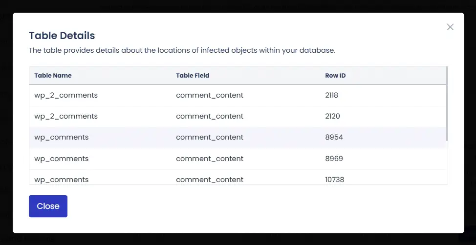 - 결과적으로 DB에서 주입 악성코드 감지됨