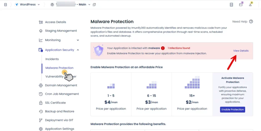 - Malware Protection 애드온(월 $4 수준) 구독하여 자동 보호 및 멀웨어 제거 가능
